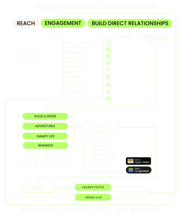 A member’s wallet is linked to their profile, which stores assets, collectibles, donations, rewards and purchases.